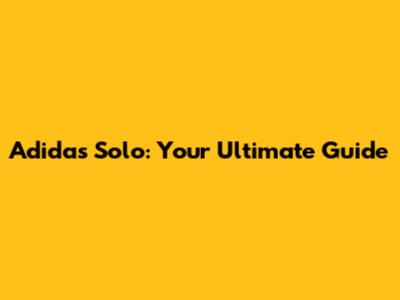 Adidas Solo: Your Ultimate Guide
