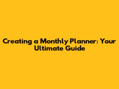 Creating A Monthly Planner: Your Ultimate Guide