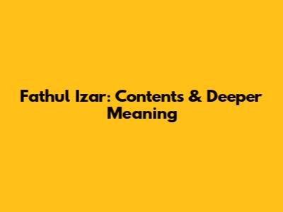 Fathul Izar: Contents & Deeper Meaning