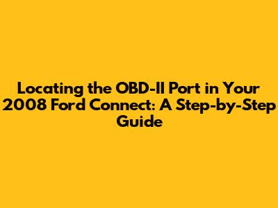 Finding The OBD Port: 2008 Ford Connect Guide