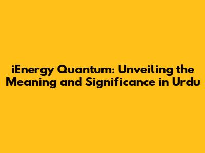 IEnergy Quantum: Meaning & Significance In Urdu