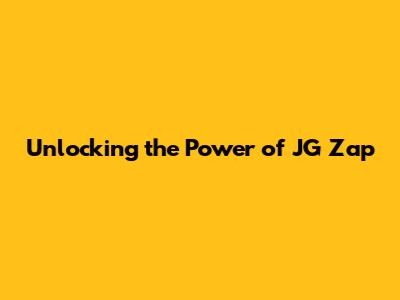 JG Zap: The Ultimate Guide