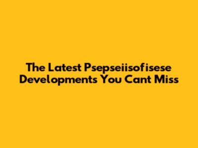 The Latest Psepseiisofisese Developments You Can't Miss