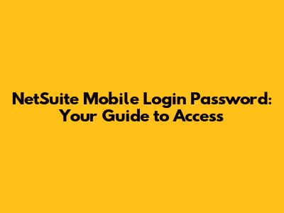 NetSuite Mobile Login Password: Your Guide To Access