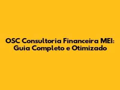 OSC Consultoria Financeira MEI: Guia Completo E Otimizado