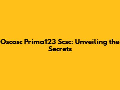 Oscosc Prima123 Scsc: Unveiling The Secrets