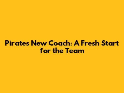 Pirates' New Coach: A Fresh Start For The Team