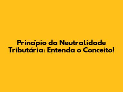 O Que É o Princípio da Neutralidade Tributária?