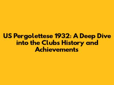 US Pergolettese 1932: History, Highlights, And More