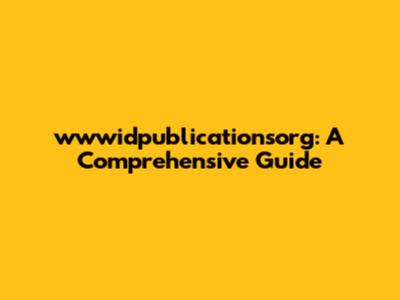 Wwwidpublicationsorg: A Comprehensive Guide